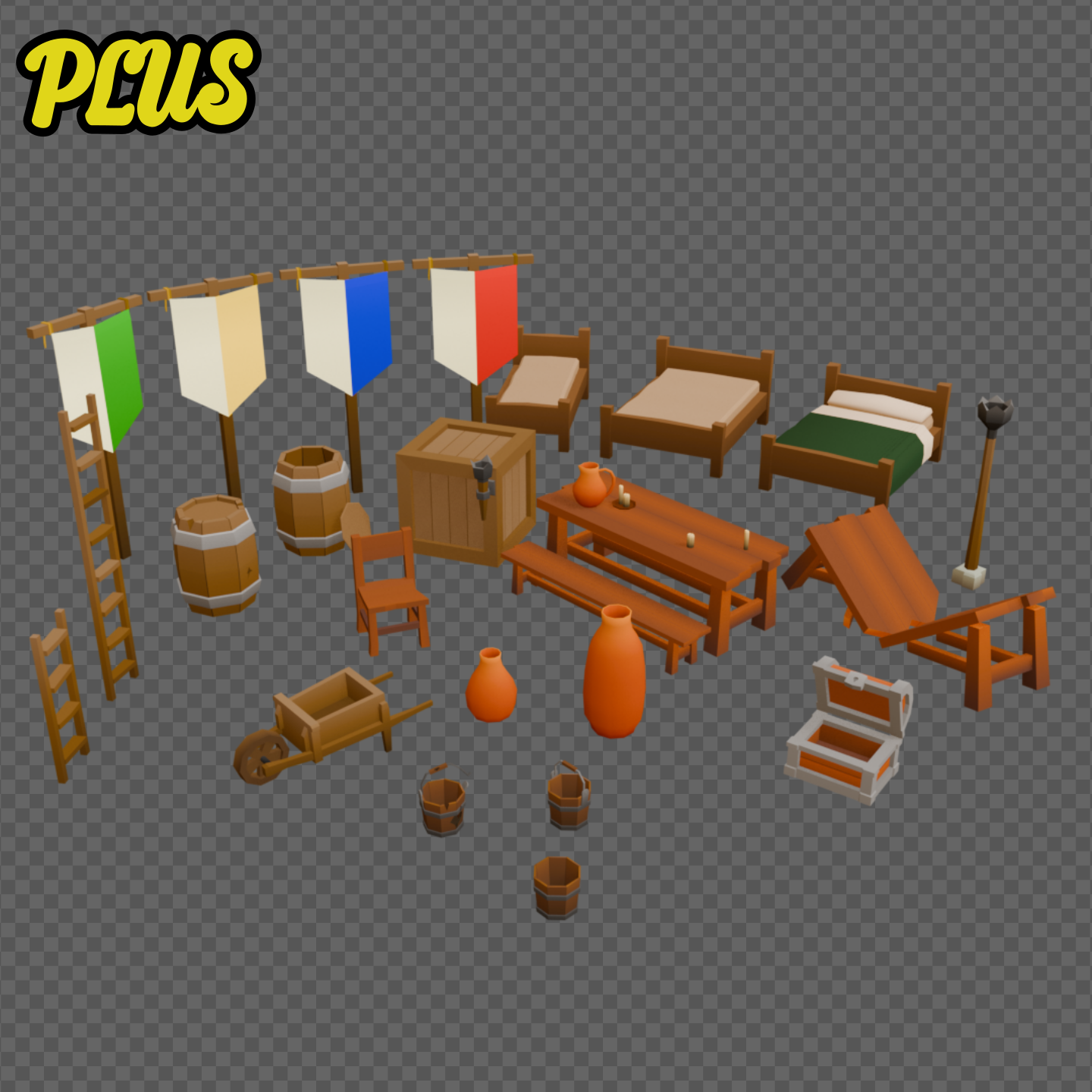 A stylized low poly medieval props pack designed for indie games and prototypes.